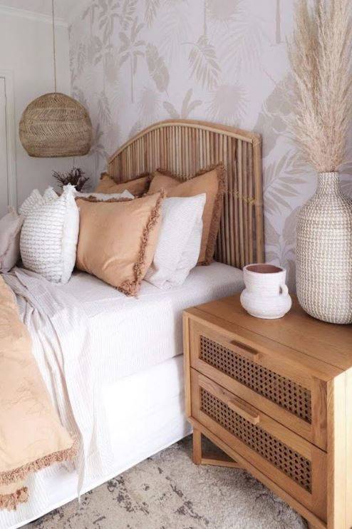 يبدو أن غرف النوم البيضاء بالكامل تتراجع في شعبيتها في عام 2022 على الرغم من مظهرها البسيط والنظيف، إلا أن الأثاث المطلي باللون الأبيض أصبح غير مرغوب فيه، هناك تحرك كبير نحو التشطيبات الطبيعية مثل الخشب والقش، تبدو اللمسة النهائية الطبيعية أيضًا مستوحاة من الطبيعة وأكثر راحة.
