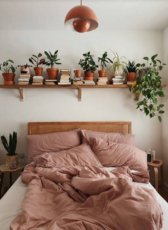 يستمر الناس في أن يكونوا أكثر وعيًا بالبيئة ويدركون أيضًا فوائد دمج العافية والطبيعة في التصميم، يمكنك دمج هذا النمط في غرفة نومك عن طريق إضافة لمسات صغيرة مثل النباتات.
