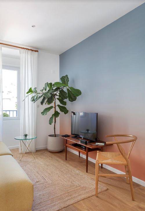 يُعرف التدرج اللوني بأنه مزج درجات مختلفة للون واحد، بالنسبة للغرف الصغيرة يعد هذا اختيارًا رائعًا، إن التحول في اللون من الغامق إلى الفاتح يرفع العين ويجعل الأسقف تبدو أطول، مما يعطي الوهم بوجود غرفة أكبر.