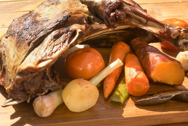 كتف ضأن بالخضروات والأعشاب في الفرن